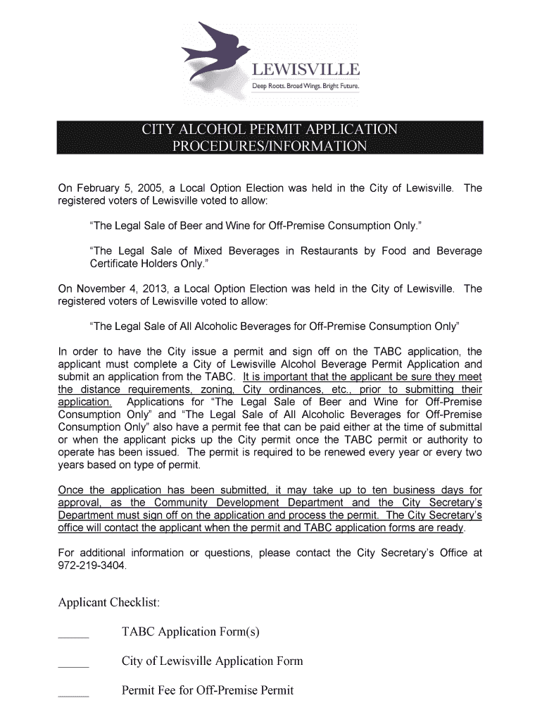 LEWISVILLE Deep Room. Broad Wings. Bright future. CITY ALCOHOLPROCEDURES/ INFORMATIONOn5, 2005,FebruaryaLocal Option Electionwasheld in theCityofLewisville. The registered voters of Lewisville voted
