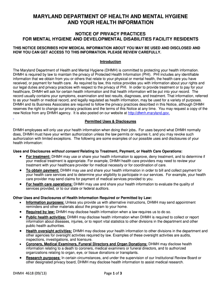 MARYLAND DEPARTMENT OF HEALTH AND MENTAL HYGIENE
