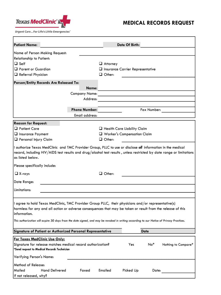 MEDICAL RECORDS REQUESTPatient Name:Date Of Birth:Name of Person Making Request: