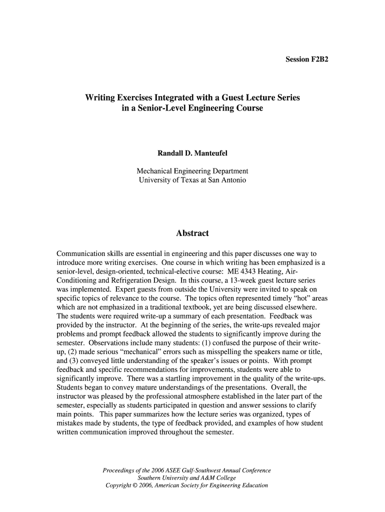 Session F2B2Writing Exercises Integrated with a Guest Lecture Series