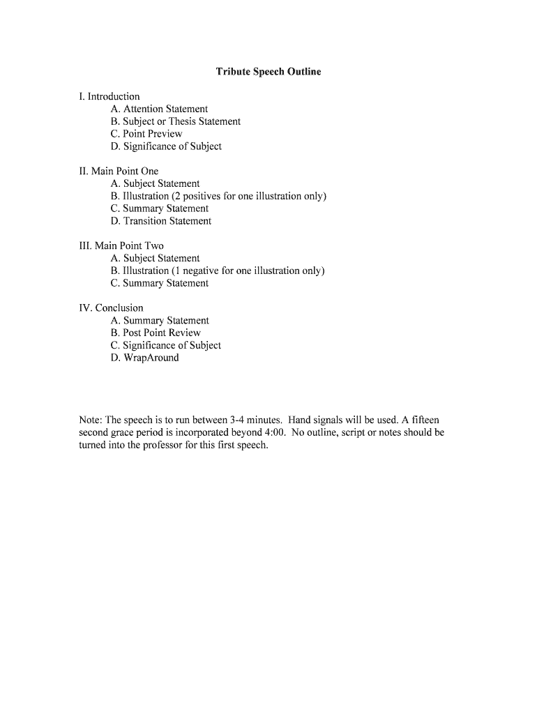 Get the free Tribute Speech Outline