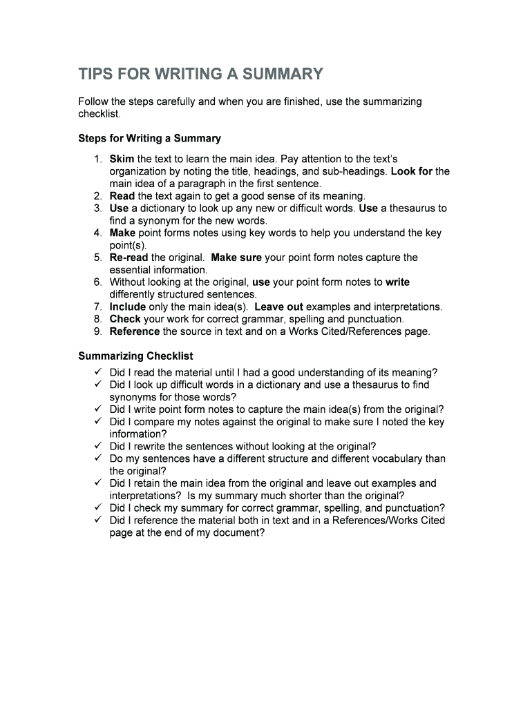Get the free TIPS FOR WRITING A SUMMARY