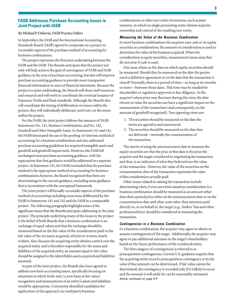 Get the free FASB Addresses Purchase Accounting Issues in