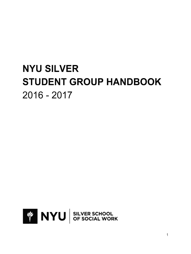 NYU SILVER STUDENT GROUP HANDBOOK 2016 20171TABLE OF CONTENTS INTRODUCTION TO THE OFFICE OF STUDENT AND ALUMNI AFFAIRS Contact Information Social Media4STUDENT GROUP RECOGNITION PROCESS Creating a