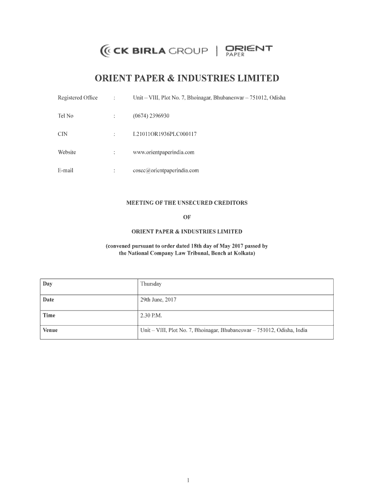 ORIENT PAPER & INDUSTRIES LIMITED Registered Office:Unit VIII, Plot No. 7, Bhatnagar, Bhubaneswar 751012, Dishwater No:(0674) 2396930CIN:L21011OR1936PLC000117Website:www.orientpaperindia.comEmail:cosec