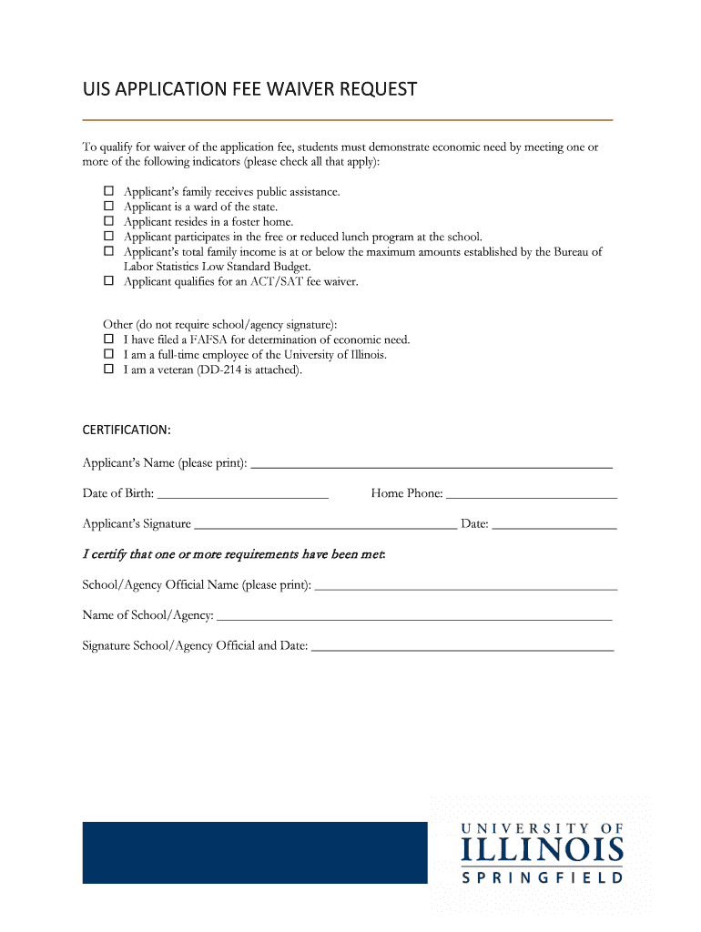 To qualify for the UIS Application Fee Waiver Form, applicants must meet specific conditions. Key eligibility requirements include: