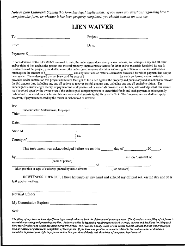 Comprehensive Guide to lien waiver form