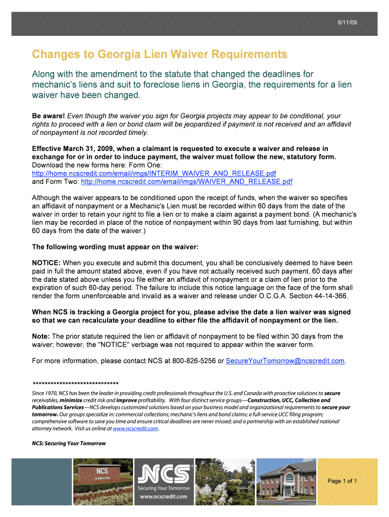 8/11/09Changes to Georgia Lien Waiver Requirements