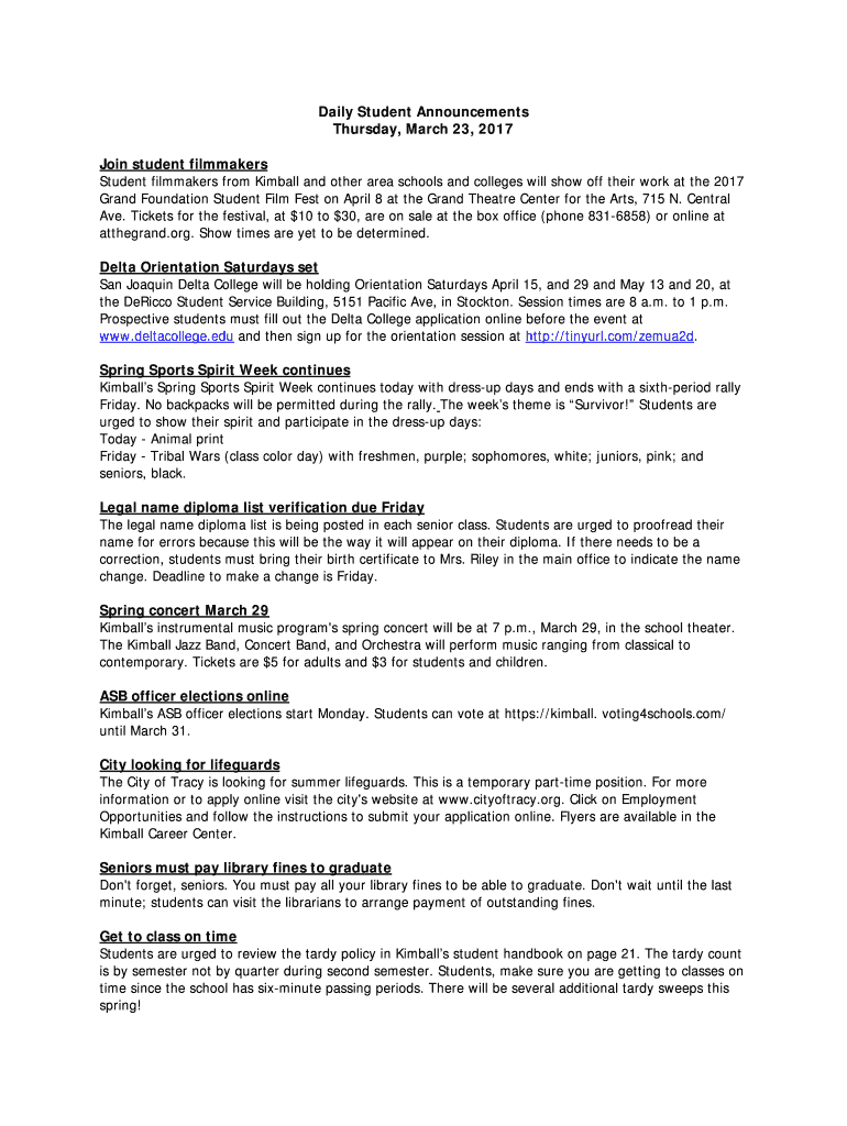 Join student filmmakers from Kimball and other area schools and colleges will show off their work at the 2017