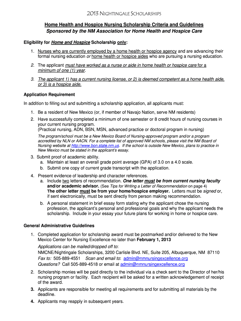 Home Health and Hospice Nursing Scholarship Criteria and Guidelines
