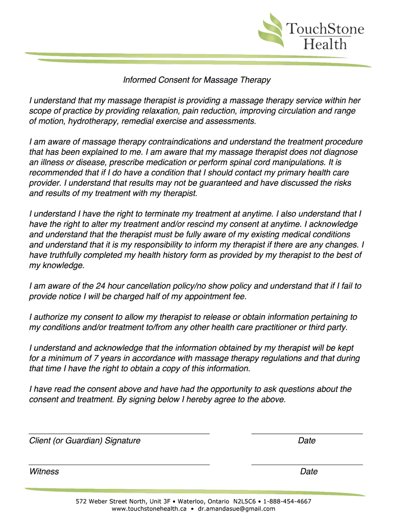 Get the free I understand that my massage therapist is providing a massage therapy service within...