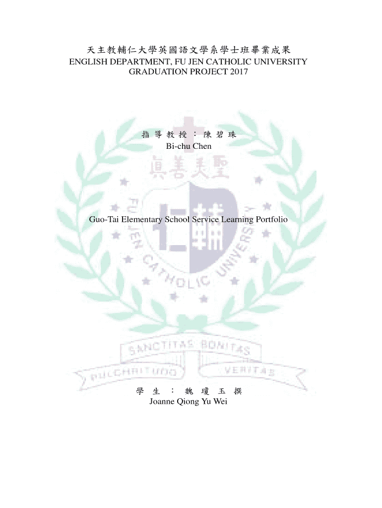 ENGLISH DEPARTMENT, FM JEN CATHOLIC UNIVERSITY GRADUATION PROJECT 2017 Fichu ChenGuoTai Elementary School Service Learning Portfolio Joanne Qing You Wei Joanne Wei 402110453 Introduction to TEFL Guitar