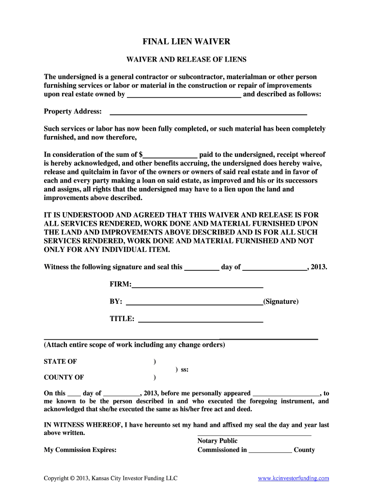 Get the free Final Lien Waiver