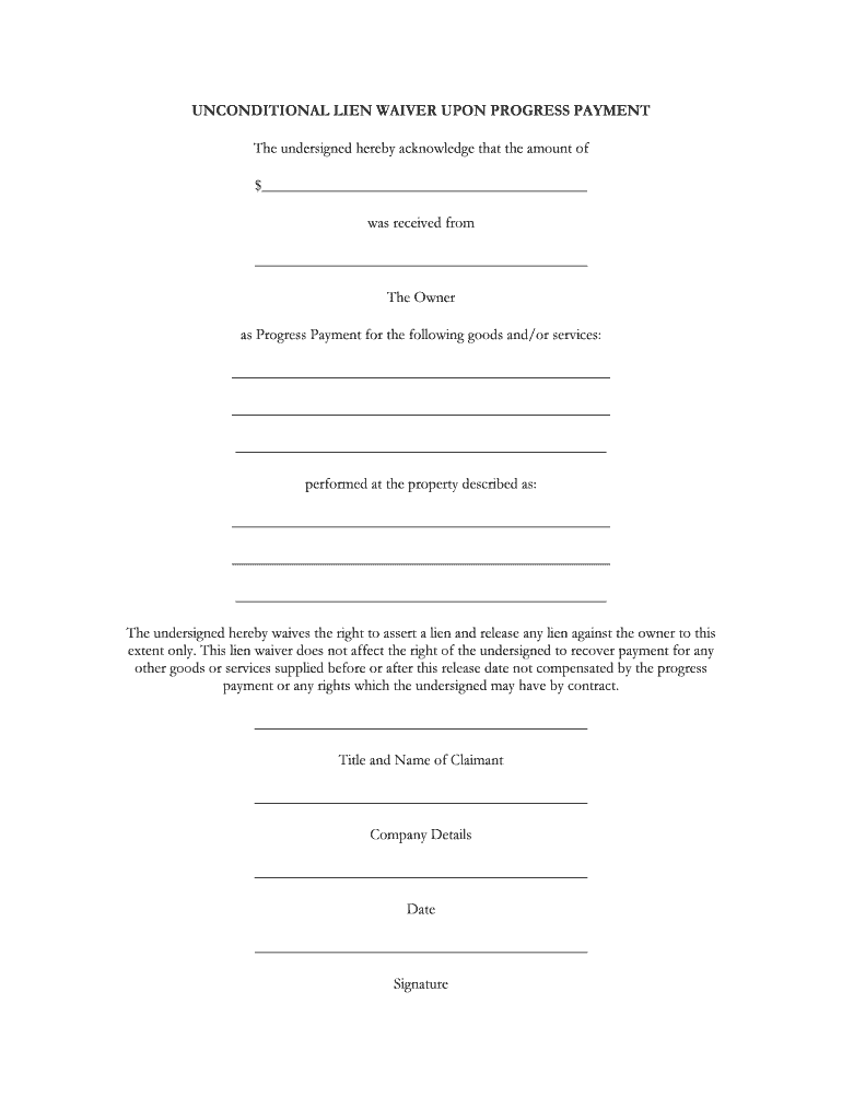 Get the free Unconditional Lien Waiver Upon Progress Payment
