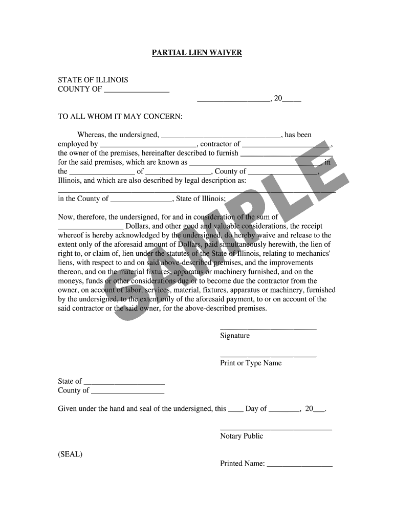 Signing and Notarizing the Illinois Partial Lien Waiver