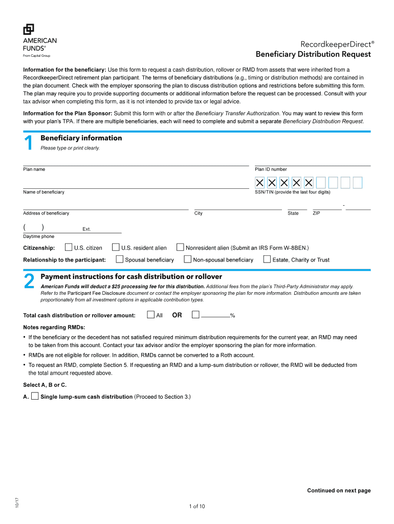 Get the free Information for the beneficiary: Use this form to request a cash distribution, rollo...