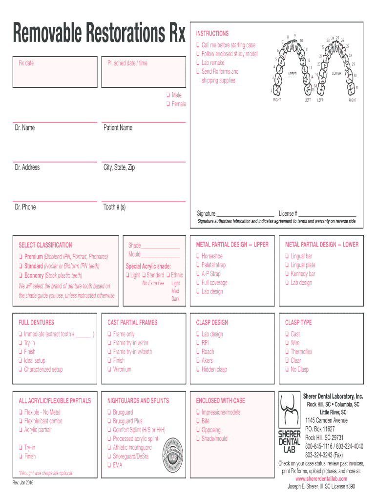 All acrylicflexible partials paperwork can be filled out by providing detailed information about the patient, the treatment, and the materials used.