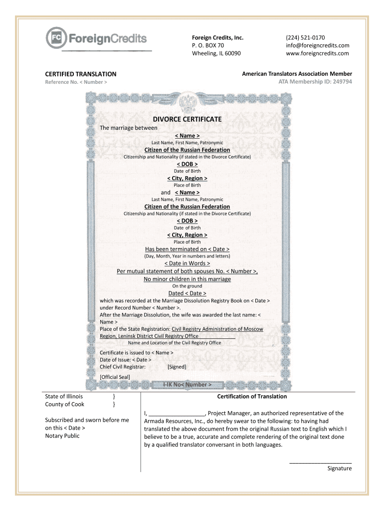 Get the free Divorce Certificate Translation