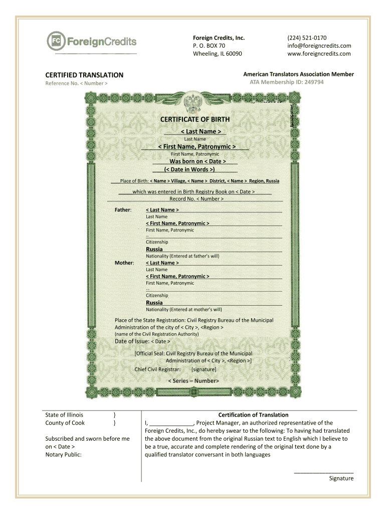 Get the free Birth Certificate Translation