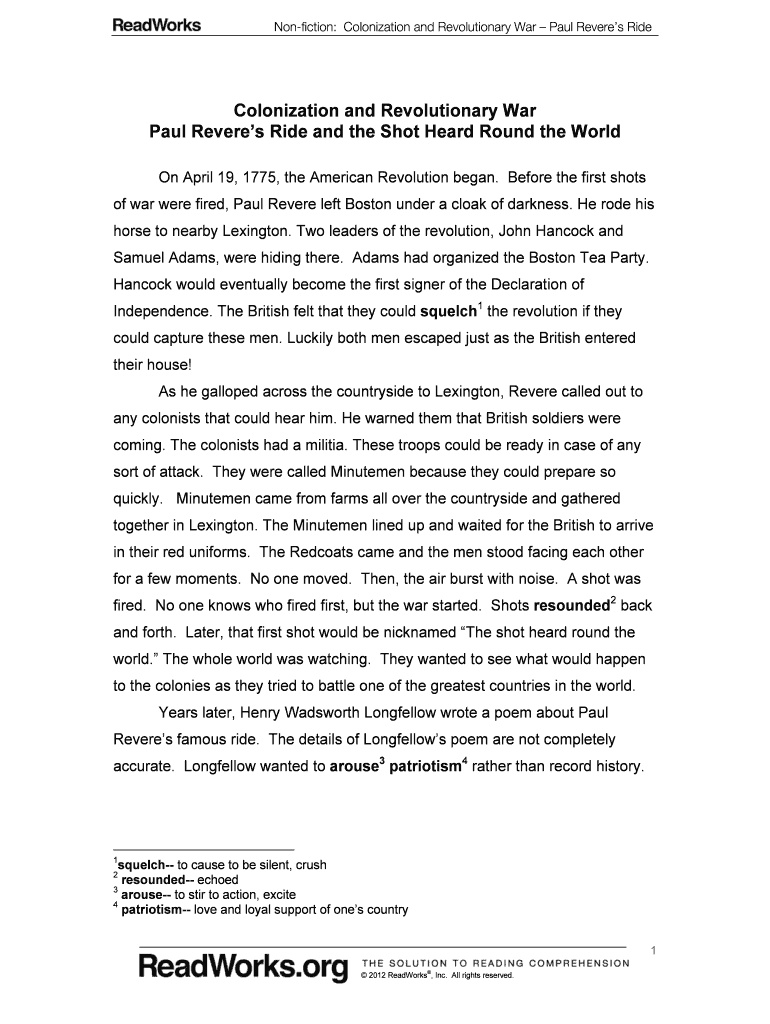 Get the free colonization revolutionary war paul revere's ride