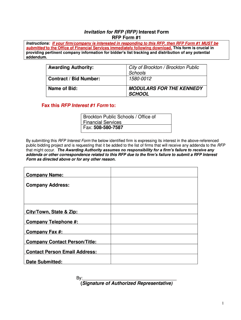 Invitation for RFP (RFP) Interest Form RFP Form #1 Instructions: If your firm/company is interested in responding to this RFP, then RFP Form #1 MUST be submitted to the Office of Financial Services