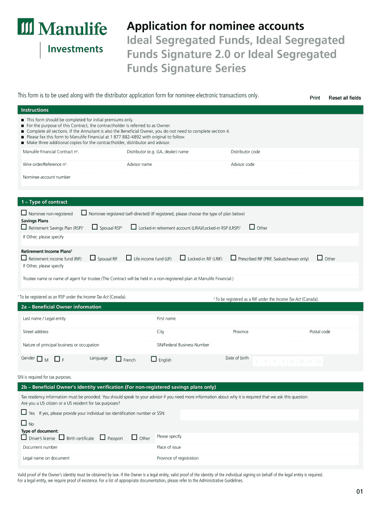 Application for nominee accounts Ideal Segregated Funds, Ideal Segregated Funds Signature 2.0 or Ideal Segregated Funds Signature Series This form is to be used along with the distributor application