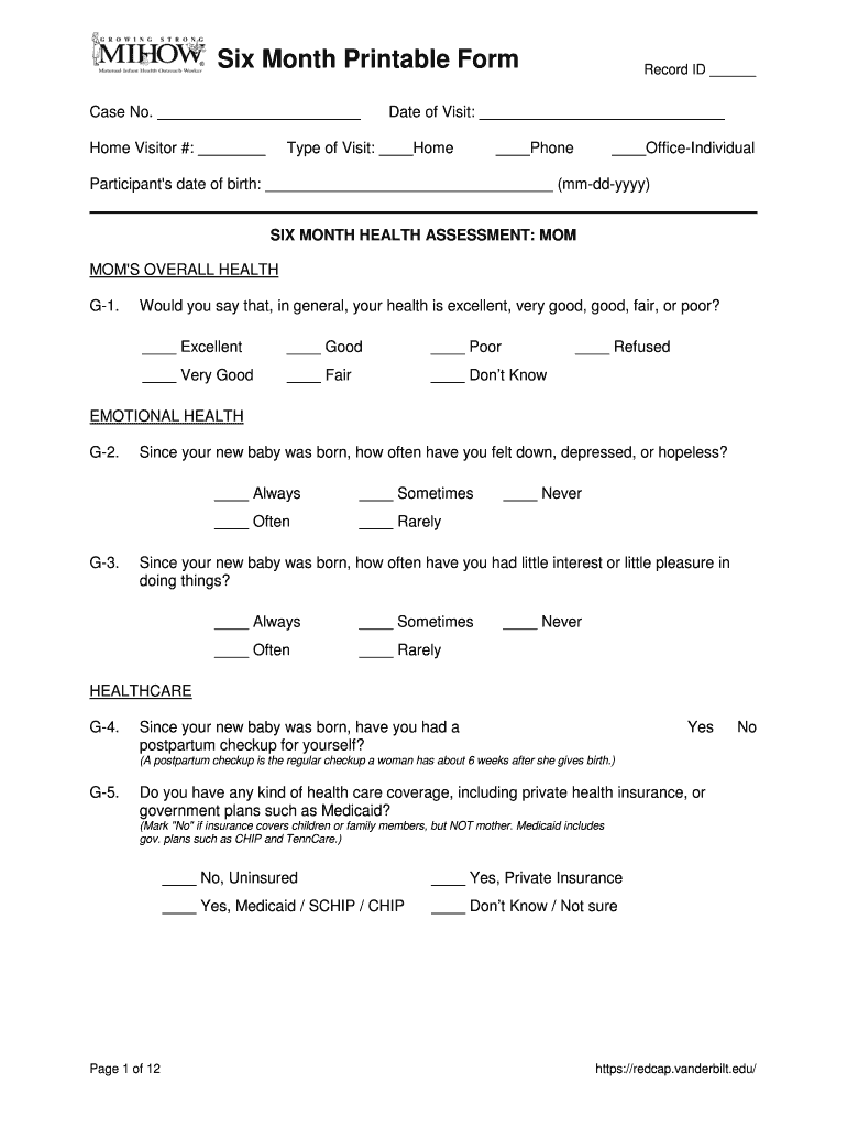 Providing a visual reference, a sample completed Six Month Health Assessment Form helps users understand the form better. Annotations can explain the importance of each section for both mothers and healthcare providers, making it easier to grasp what details are necessary.