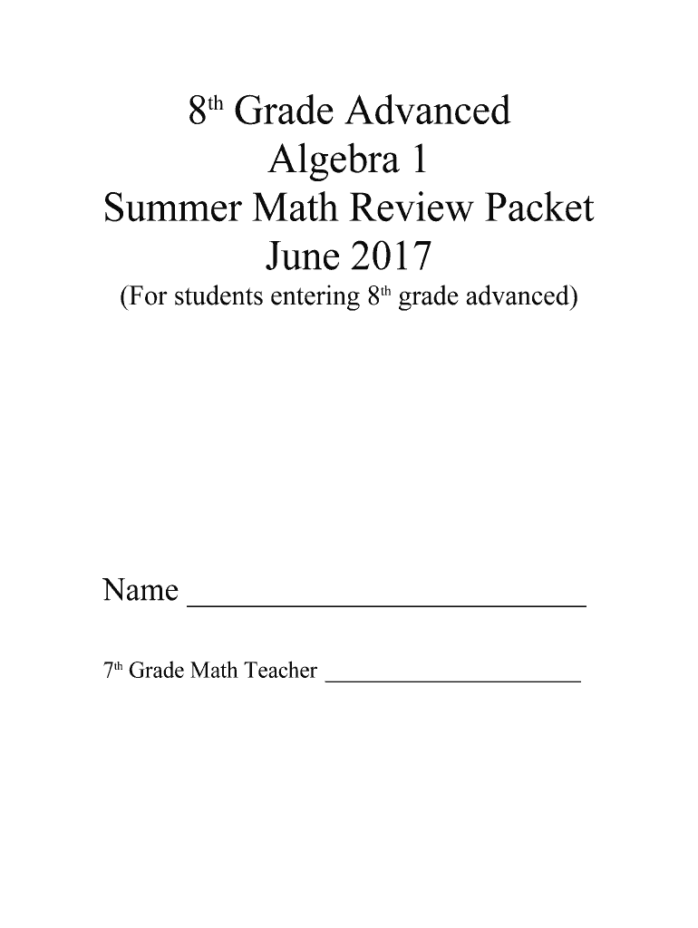 8th Grade Advanced Algebra 1 Summer Math Review Packet June 2017 (For students entering 8th grade advanced)Name 7th Grade Math Teacher Objectives for Algebra I Summer Packet 20172018 I. Variables
