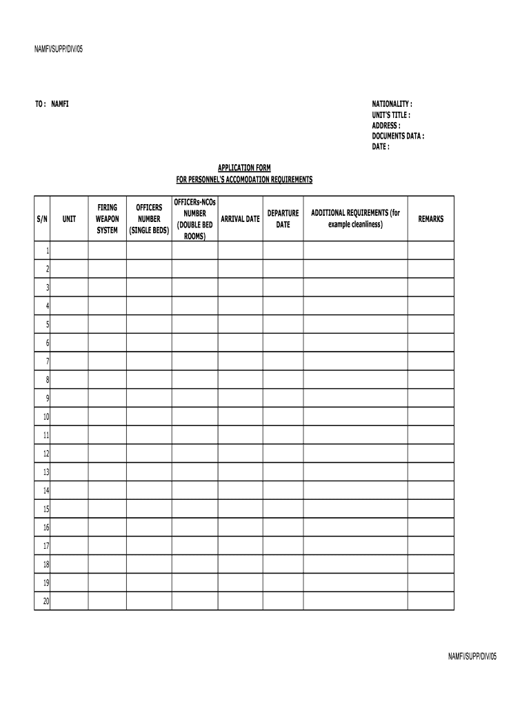 FOR PERSONNEL\'S ACCOMMODATION REQUIREMENTS/UNTIRING