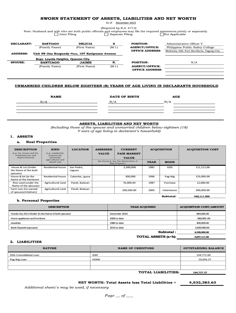 As of December 2013(Required by R.A. 6713)