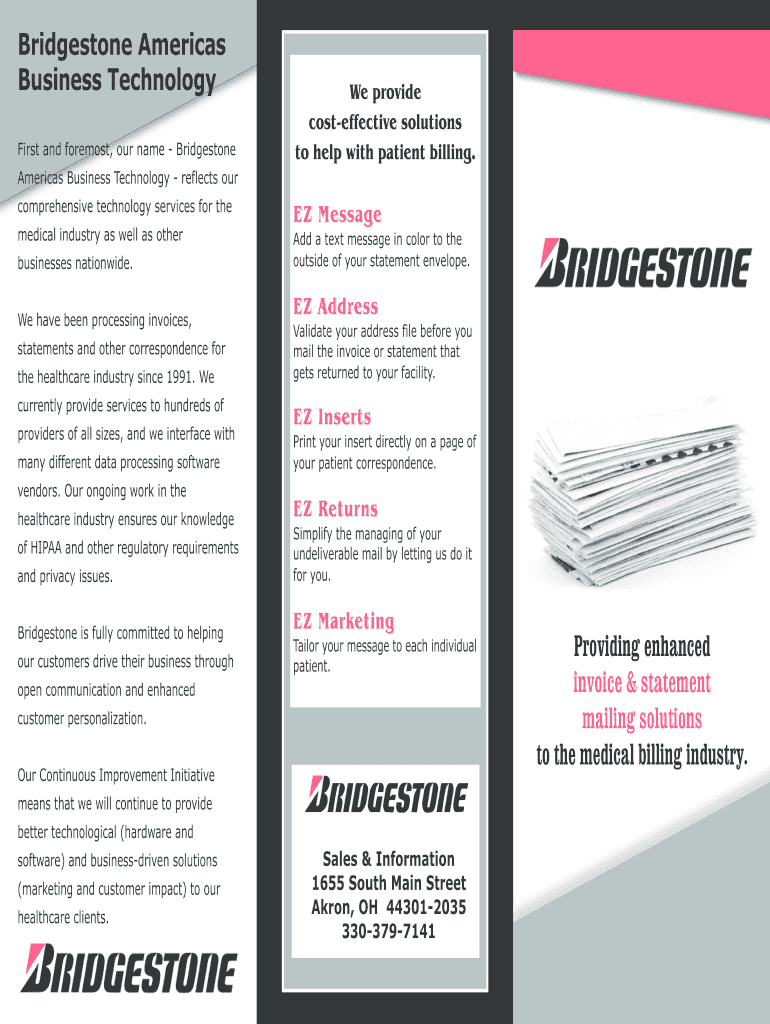 Bridgestone Americas Business Technology First and foremost, our name BridgestoneAmericas Business Technology reflects our comprehensive technology services for the medical industry as well as other