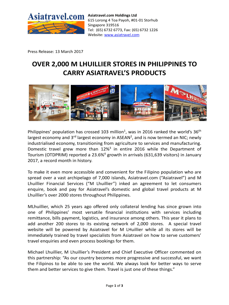 Website: www.asiatravel.comPress Release: 13 March 2017OVER 2,000 M HILLIER
