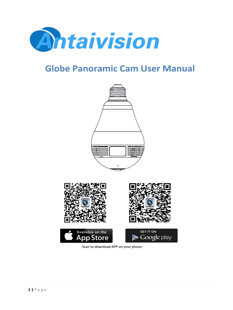 Globe Panoramic Cam User Manual Scan to download APP on your phone1 Begetting Started Features Panoramic Lens Constant 360 surveillance; captures everything in the field of view. Remote monitoring