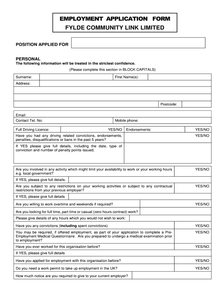 EMPLOYMENT APPLICATION FORM