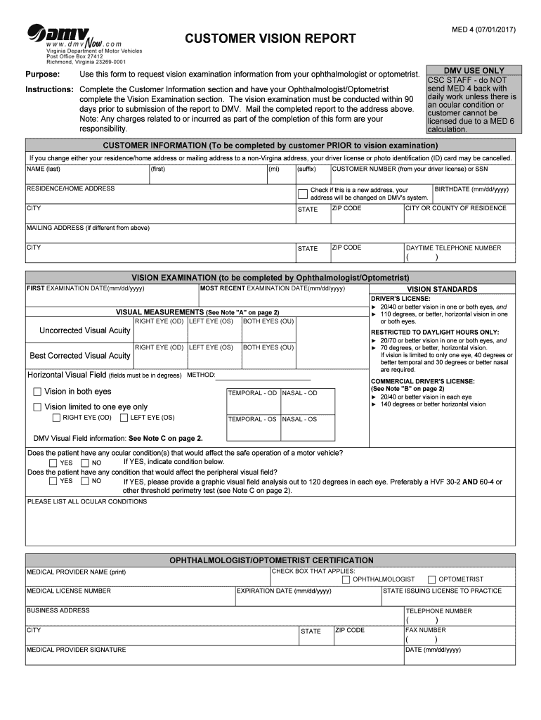 Purpose:Use this form to request vision examination information from your ophthalmologist or optometrist. Instructions: Complete the Customer Information section