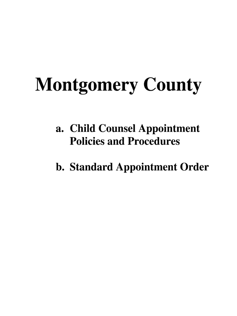 Montgomery County a. Child Counsel Appointment Policies and Procedures b. Standard Appointment OrderCircuit Court for Montgomery County, Maryland Child Counsel Appointment Policies & Procedures The