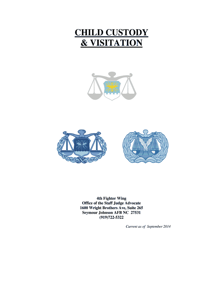 CHILD CUSTODY & VISITATION4th Fighter Wing Office of the Staff Judge Advocate 1600 Wright Brothers Ave, Suite 265 Seymour Johnson AFB NC 27531 (919)7225322 Current as of September 2014CHILD CUSTODY