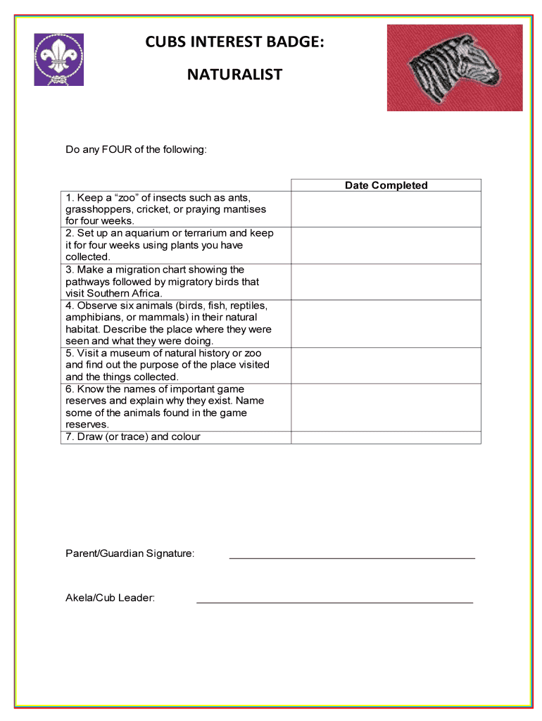 Naturalist any FOUR of the following:1. Keep a zoo of insects such as ants,