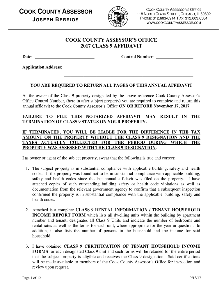 COOK COUNTY ASSESSOR JOSEPH BERRIOSCOOK COUNTY ASSESSORS OFFICE 118 NORTH CLARK STREET, CHICAGO, IL 60602 PHONE: 312.6036914 FAX: 312.603.6584 WWW.COOKCOUNTYASSESSOR.COCOON COUNTY ASSESSORS OFFICE