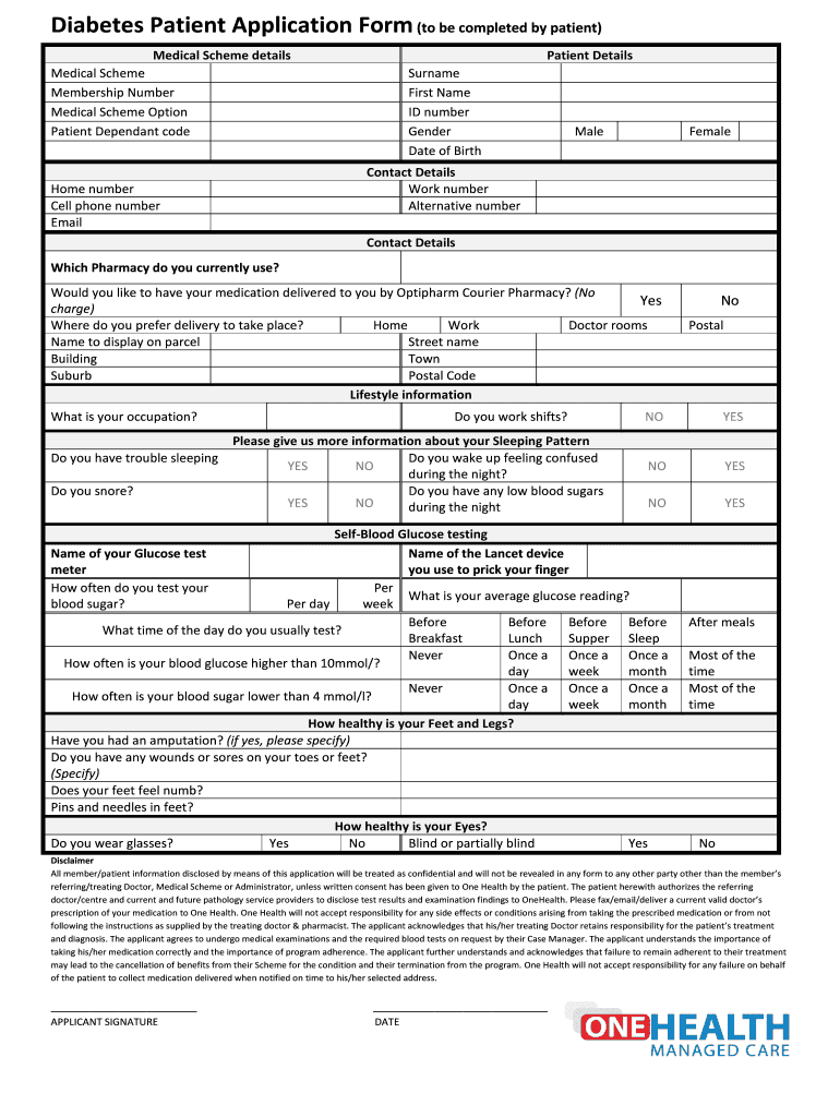 Get the free Diabetes Patient Application Form (to be completed by patient)