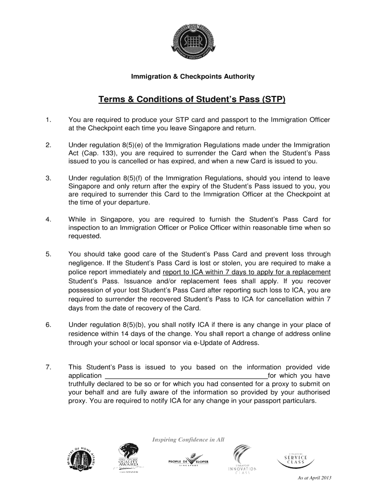 The Student’s Pass Terms & Conditions is a legal document that outlines obligations for students holding a Student’s Pass (STP) in Singapore. Its primary purpose is to detail compliance requirements and responsibilities under Singaporean immigration laws.