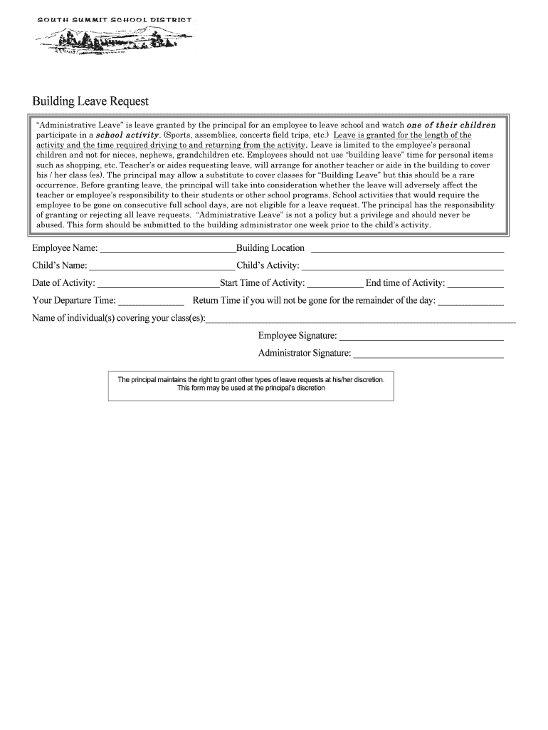 Administrative Leave is leave granted by the principal for an employee to leave school and watch one of their children