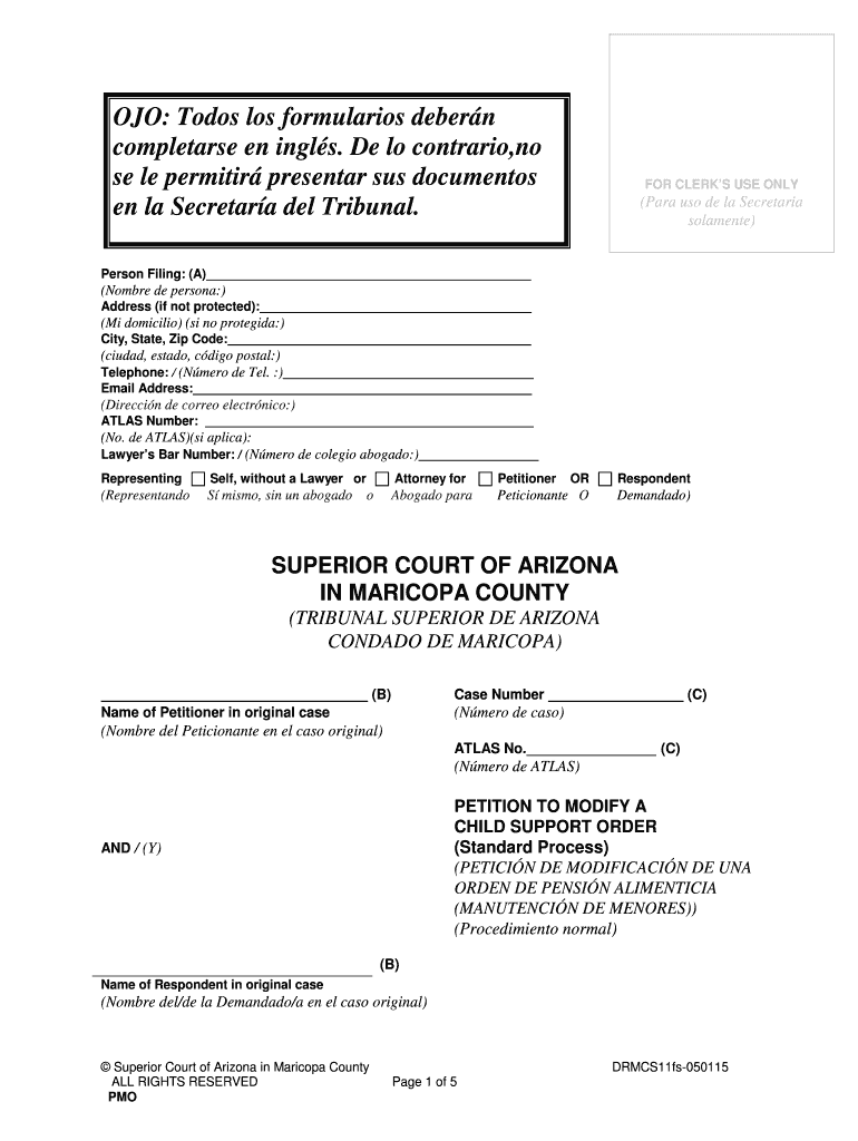 PETITION TO MODIFYCHILD SUPPORT (STANDARD PROCESS)(PEDRO PARA CAMBIAL PENSION ALIMENTING (MANUTENCIN DE SEÑORES) (PROCESS NORMAL)1 To Change an Existing Order Due to Continue Change in Circumstances