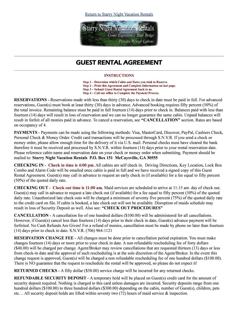 Get the free Starry Night Vacation Rentals Guest Rental Agreement