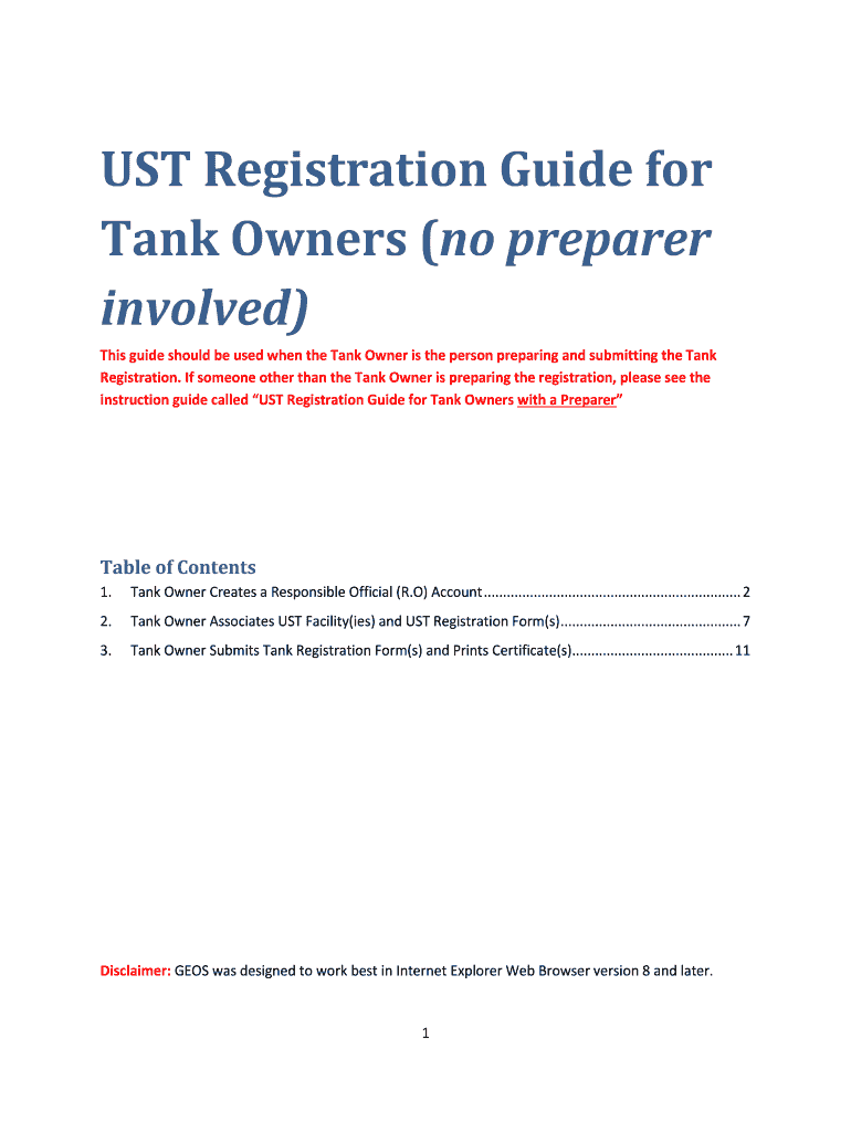 This guide should be used when the Tank Owner is the person preparing and submitting the Tank