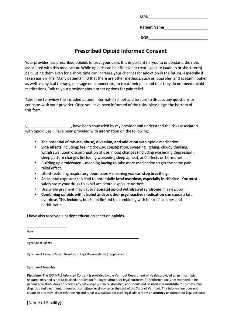 Prescribed Opioid Informed Consent
