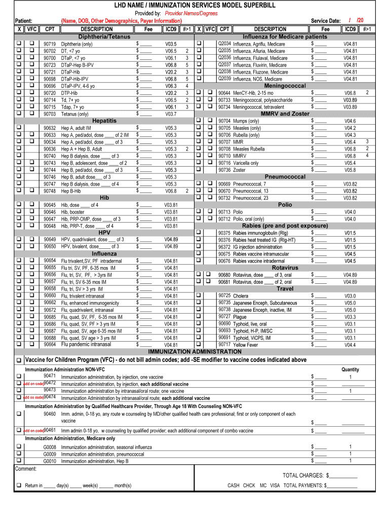 Get the free Immunization Services Model Superbill