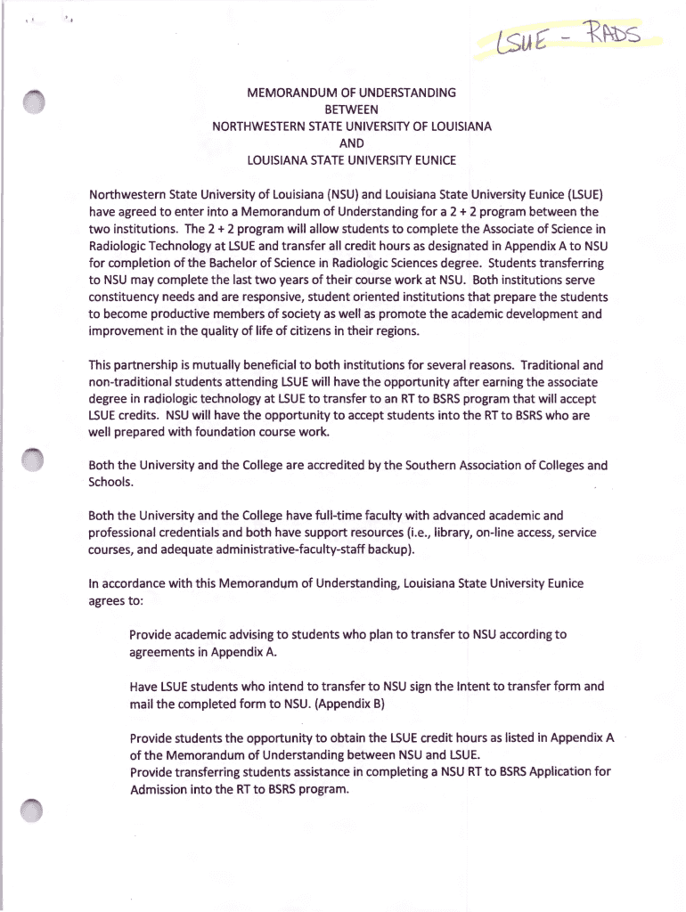 Get the free Northwestern State University of Louisiana (NSU) and Louisiana State University Euni...