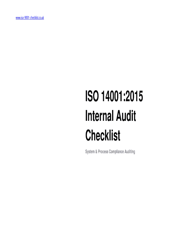 WWW.iso9001checklist.co.kiss 14001:2015 Internal Audit Checklist System & Process Compliance AuditingInsert your companies name or logo.ISO 14001:2015 Audit Checklist System & Process Compliance AuditingTable