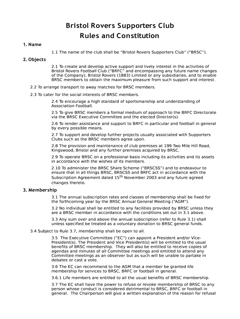 1.1 The name of the club shall be Bristol Rovers Supporters Club (RSC).2. Objects